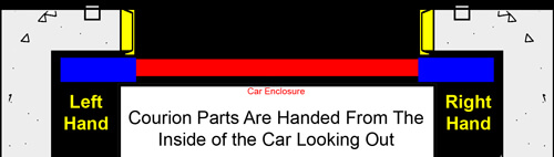 The hand of Courion parts is determined by standing inside the elevator looking out.